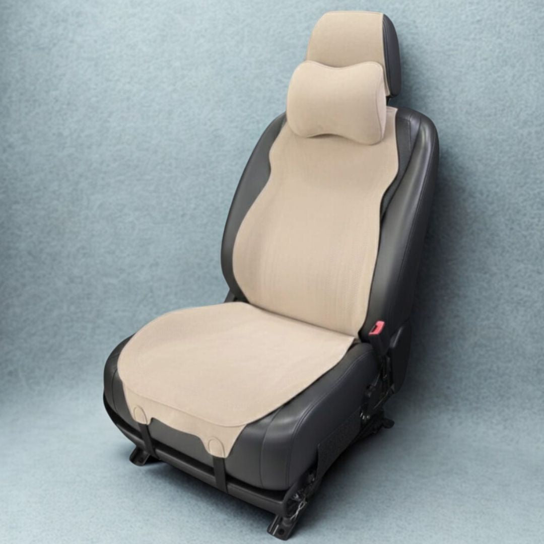 ☁️ راحة استثنائية: استمتع بقيادة مريحة مهما طالت المسافة! التصميم المبطن يوفر دعماً مثالياً لظهرك ومقعدك، بالإضافة إلى وسادة الرقبة المريحة التي تدعم فقرات عنقك لتودع آلام الطريق.
